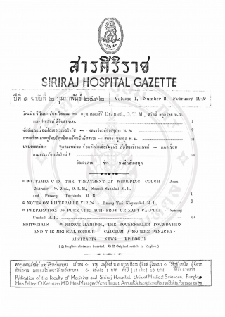 Siriraj Hospital Gazette Vol. 1, No.2 (Feb. 1949), 1-8