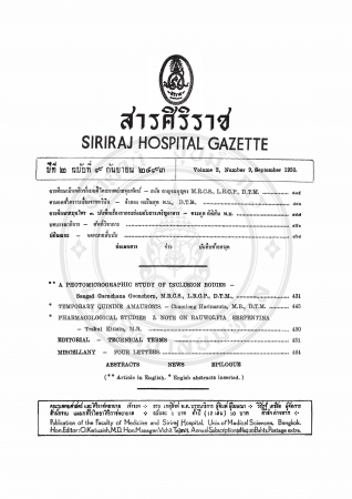 Siriraj Hospital Gazette Vol. 2, No.9 (Sep. 1950), 431-439