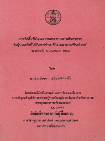 การติดเชื้อซัลโมเนลลานอกระบบทางเดินอาหารในผู้ป่วยเด็กที่ได้รับการรักษาที่โรงพยาบาลศรีนครินทร์ ระหว่างปี พ.ศ. 2537-2541