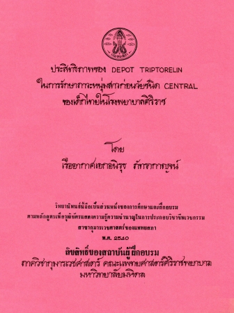 ประสิทธิภาพของ depot triptorelin ในการรักษาภาวะหนุ่มสาวก่อนวัยชนิด central ของเด็กไทยในโรงพยาบาลศิริราช