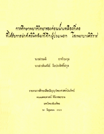 การศึกษาพยาธิวิทยาของต่อมน้ำเหลืองที่คอที่ได้รับการผ่าตัดวินิจฉัยที่ตึกผู้ป่วยนอก โรงพยาบาลศิริราช