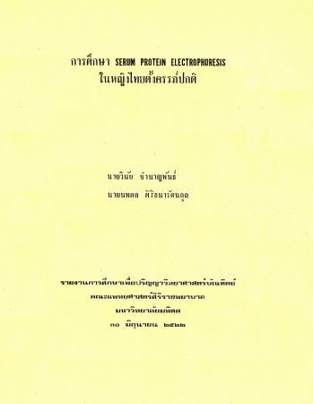 การศึกษา Serum protein electrophoresis ในหญิงไทยที่ตั้งครรภ์ปกติ