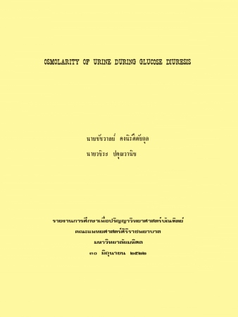 การเปลี่ยนแปลงออสโมลาริตีย์ของปัสสาวะภายหลังดื่มสารละลาย 5% กลูโคส