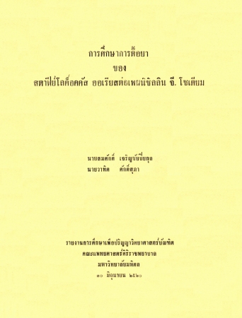 การศึกษาการดื้อยาของสตาฟีย์โลคอคคัส ออเรียสต่อเพนนิซิลลิน จี.โซเดียม