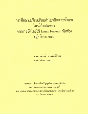 การศึกษาเปรียบเทียบค่าโปรตีนและน้ำตาลในน้ำไขสันหลังจากการวัดโดย Labstix, Dextrostix กับห้องปฏิบัติการกลาง