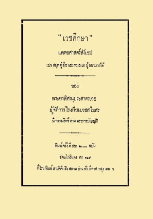 เวชศึกษา : แพทยศาสตร์สังเขป เป็นสมุดคู่มือของหมอแลผู้พยาบาลคนไข้