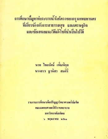 การศึกษาปัญหาท่อระบายน้ำโสโครกของกรุงเทพมหานครที่เกี่ยวข้องกับการ สาธารณสุขและเศรษฐกิจ และข้อเสนอแนะวิธีแก้ไขที่น่าเป็นไปได้