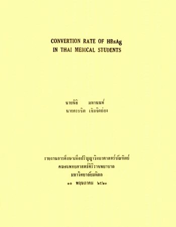 Convertion rate of HBsAg in Thai medical students