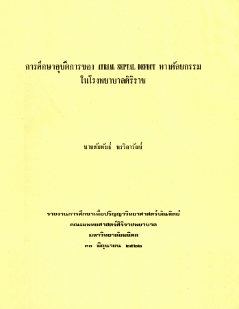 การศึกษาอุบัติการของ Atrial septal defect ทางศัลยกรรมในโรงพยาบาลศิริราช